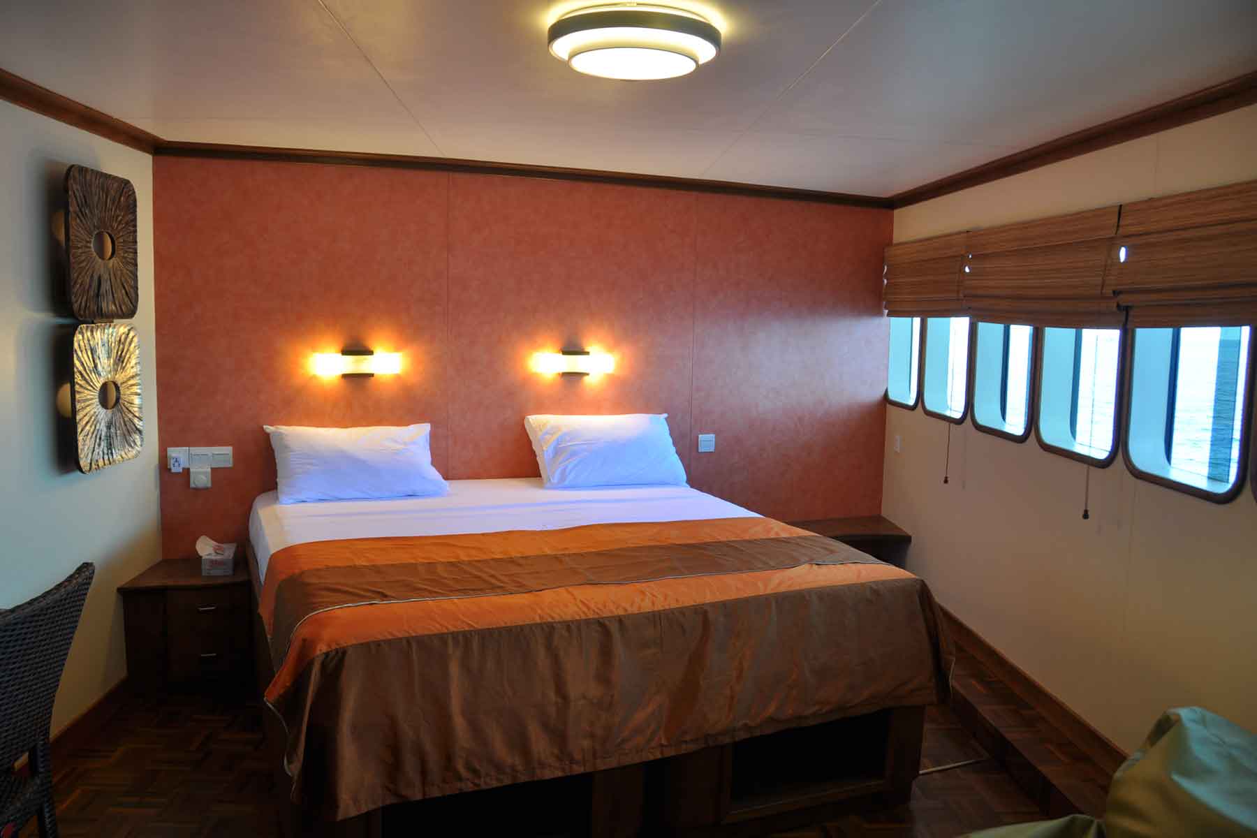 The Superior cabins, located on the main deck have huge king size beds which can be separated in two super single beds and desk/chair/dresser, hanging closet, large windows, private ensuite bathroom and shower cubicle.